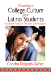 Creating a College Culture for Latino Students Successful Programs, Practices, and Strategies Delgado, C. (2012) Corwin Press To order: Powells Books Corwin Press Amazon.com Barnes & Noble |